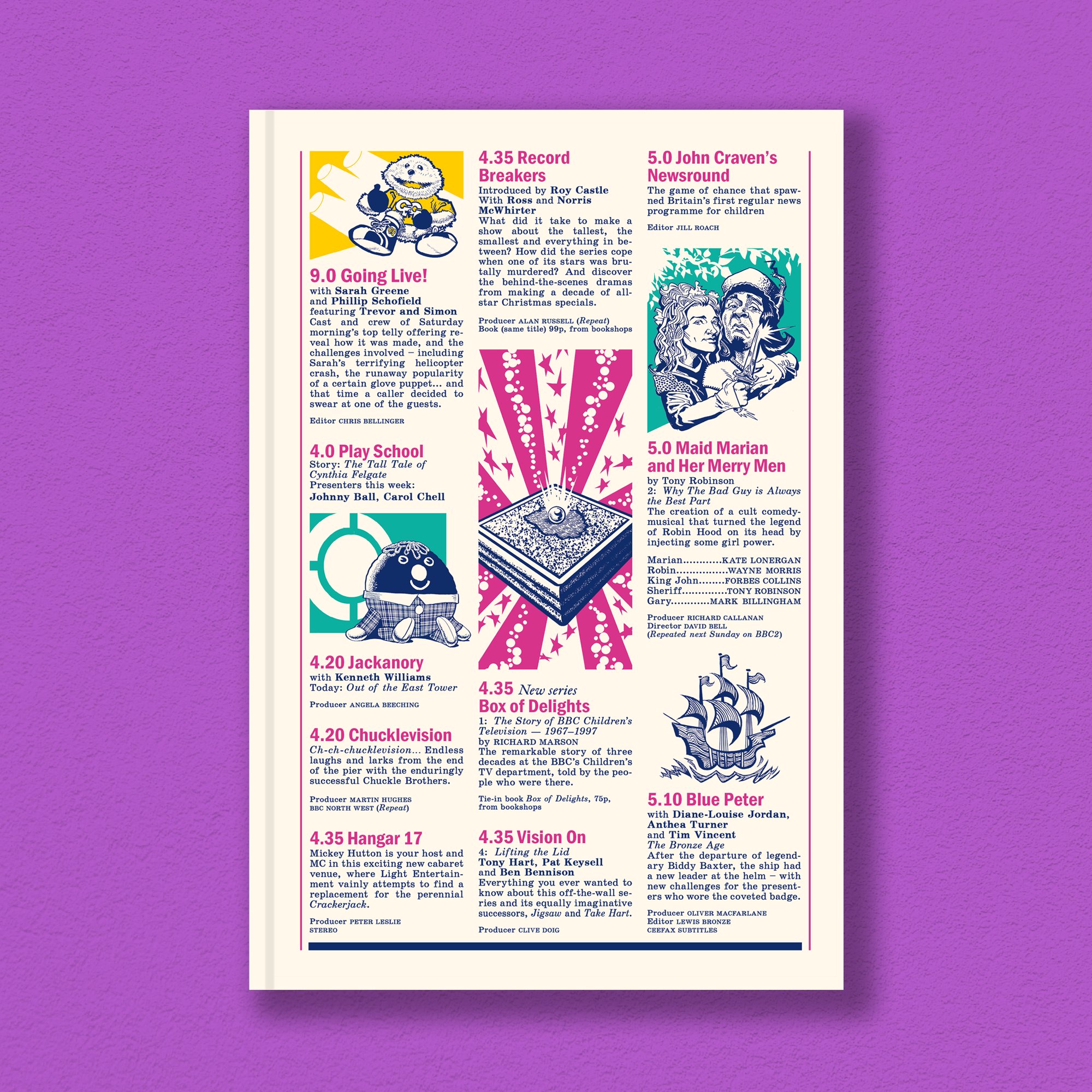 From Play School to Blue Peter, Jackanory to Newsround, Vision On to Record Breakers, Swap Shop to Live & Kicking, Rentaghost to Chucklevision, Grange Hill to The Demon Headmaster, The Chronicles of Narnia to Maid Marian and Her Merry Men, Animal Magic to The Really Wild Show...
